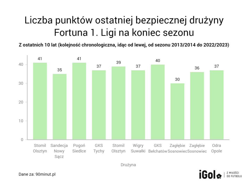 Z wyłączeniem sezonu 2020/2021, w którym spadła tylko jedna drużyna, zwykle do zajęcia tego miejsca starczało przynajmniej 35 punktów. Jednak patrząc na dyspozycję obydwu drużyn, sądzimy, że tym razem wynik ten będzie niższy.