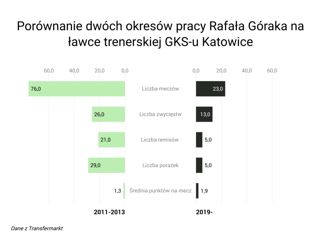 Obecnie sytuacja wygląda już zgoła inaczej, a Rafał Górak chyba zaprzeczył powiedzeniu, że nie wchodzi się dwa razy do tej samej rzeki. W tym sezonie urodzony w Bytomiu szkoleniowiec GKS Katowice prowadził już 23 razy, znacznie poprawiając średnią punktów na mecz. Górak to jednak nie tylko niezłe statystyki, ale przede wszystkim gra.