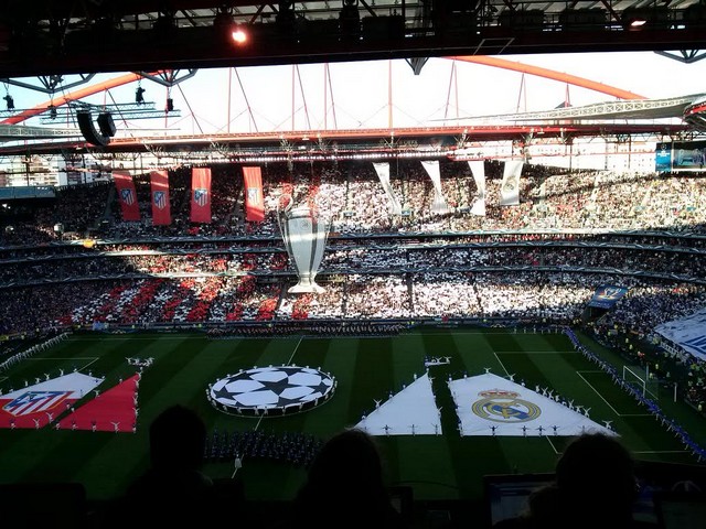A na samym stadionie podczas meczu pod względem atmosfery również było ciekawie. Okazało się, że kibice obu drużyn nie zjawili się w przypadkowym gronie i typowi „klaskacze” uaktywniający się po udanych akcjach jednej z drużyn zdecydowanie pozostawali w cieniu rozśpiewanych najzagorzalszych fanów obu ekip. UEFA kibicom Realu i Atletico przekazała po 18 tysięcy biletów, ale nie ulega wątpliwości, że na stadionie było więcej fanów obu drużyn. Wszystko za sprawą biletów sprzedawanych przez koników, choć kwoty kart wstępu na czarnym rynku były horrendalne. Byłem nawet świadkiem, kiedy jeden z kibiców Realu poszukiwał wejściówek dla dziewięciu kolegów, ale 2000 euro, jakie usłyszał za pojedynczy bilet, szybko sprawiły, że finał postanowił ostatecznie obejrzeć w jednym z pubów. Co ciekawe, wbrew informacji, które podała UEFA, stadion na meczu nie był jednak w 100% wypełniony. Bezpośrednio przy stanowiskach dziennikarskich połączonych z częścią dla publiczności znajdował się cały jeden pusty rząd i można się tylko zastanawiać, czy to wina zmiany planów nielicznych żurnalistów, którzy ostatecznie do stolicy Portugalii nie dotarli, czy może wspomniane koniki faktycznie przeholowały z ceną wstępu na mecz.