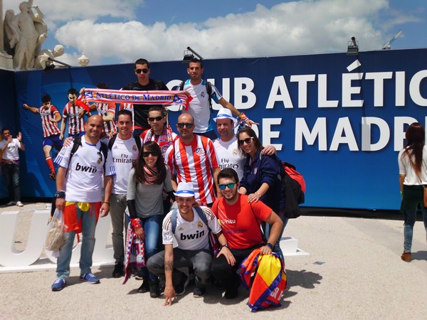 Oprócz wspólnej strefy kibica były też miejsca w Lizbonie, gdzie z zasady bawili się fani tylko jednej drużyny. I tak kibice Realu stacjonowali na Rossio i Praca da Figueira, sympatycy Atletico zadomowili się zaś na Parque Eduardo VII. Ja sam odwiedziłem strefę „Królewskich”. Na jej środku stanął ogromny telebim, na którym na kilka godzin przed finałowym rozstrzygnięciem puszczano jeszcze powtórkę meczu Realu z Bayernem, a hiszpańscy fani – choć od tego spotkania minęło już wiele tygodni – nadal żywiołowo reagowali na kolejne bramki wbijane Manuelowi Neuerowi przez podopiecznych Ancellotiego. Całość odbywała się w atmosferze wielkiego futbolowego święta, a każdy, niezależnie od swoich upodobań, mógł znaleźć coś interesującego dla siebie. Jedni podrygiwali w rytm muzyki puszczanej przez DJ-a, inni co sił śpiewali pieśni chwalebne pod adresem swojej drużyny, a w utrzymaniu odpowiedniej linii melodycznej zdecydowanie pomagały im procenty zawarte w spożywanych trunkach. W pewnym momencie pojawiły się również race, co dla zwolenników maksymy „Against Modern Football” potępiających wiele komercyjnych działań UEFA było zapewne optymistycznym akcentem. Warto jednak podkreślić, że ogólna atmosfera finału na mieście przypominała raczej błogą sielankę i choć mecz miał charakter derbowego pojedynku, to przypadków agresji w stosunku do fanów przeciwnych zespołów w zasadzie nie uświadczyliśmy.