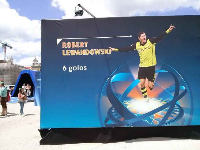 Tym razem, w przeciwieństwie do poprzedniej edycji, decydujący pojedynek Champions League został rozegrany bez udziału Polaków. Nie znaczy to jednak, że w stolicy Portugalii nie było polskich akcentów. Już w piątek pod stadionem Benfiki spotkałem Dominika Cieślę. Kto to taki? Student z Polski, który aktualnie w ramach programu Erasmus przebywa w Turynie, a jednocześnie jeden z tych szczęściarzy, którym udało się wygrać bilet na finałowy pojedynek dzięki udziałowi w konkursie „Fan of the Match” organizowanym przez Gazprom. – Przyjechałem tutaj autobusem bezpośrednio z Włoch. Podróż trwała 30 godzin, ale na pewno było warto! – podkreślał jeszcze przed samym meczem Dominik, który jest zagorzałym fanem Atletico, dlatego sobotni finał miał dla niego szczególne znaczenie. Innym polskim elementem był ustawiony w specjalnej strefie kibica baner z sylwetką Roberta Lewandowskiego, który stanął obok wielkoformatowych zdjęć pozostałych najlepszych strzelców tej edycji rozgrywek. Przybyli fani docenili taką możliwość i chętnie robili sobie zdjęcia na tle swoich ulubieńców.