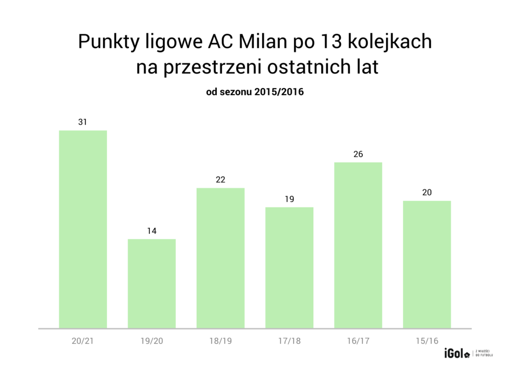 Mediolańczycy po prostu zaczęli ten sezon z wysokiego c. Od dawna na stadionie imienia Giuseppe Meazzy nie widać było tak dobrze grającego Milanu. Tak dobrze grającego i zarazem punktującego, gdyż ma on uzbierane 31 na 39 możliwych oczek. Mało tego, jest to jedyna drużyna w pięciu najlepszych ligach europejskich, która nie przegrała spotkania na krajowym podwórku. Dziewięć zwycięstw i cztery remisy robią jeszcze większe wrażenie, gdy weźmiemy pod uwagę, z kim grała ekipa z północnej części Włoch.