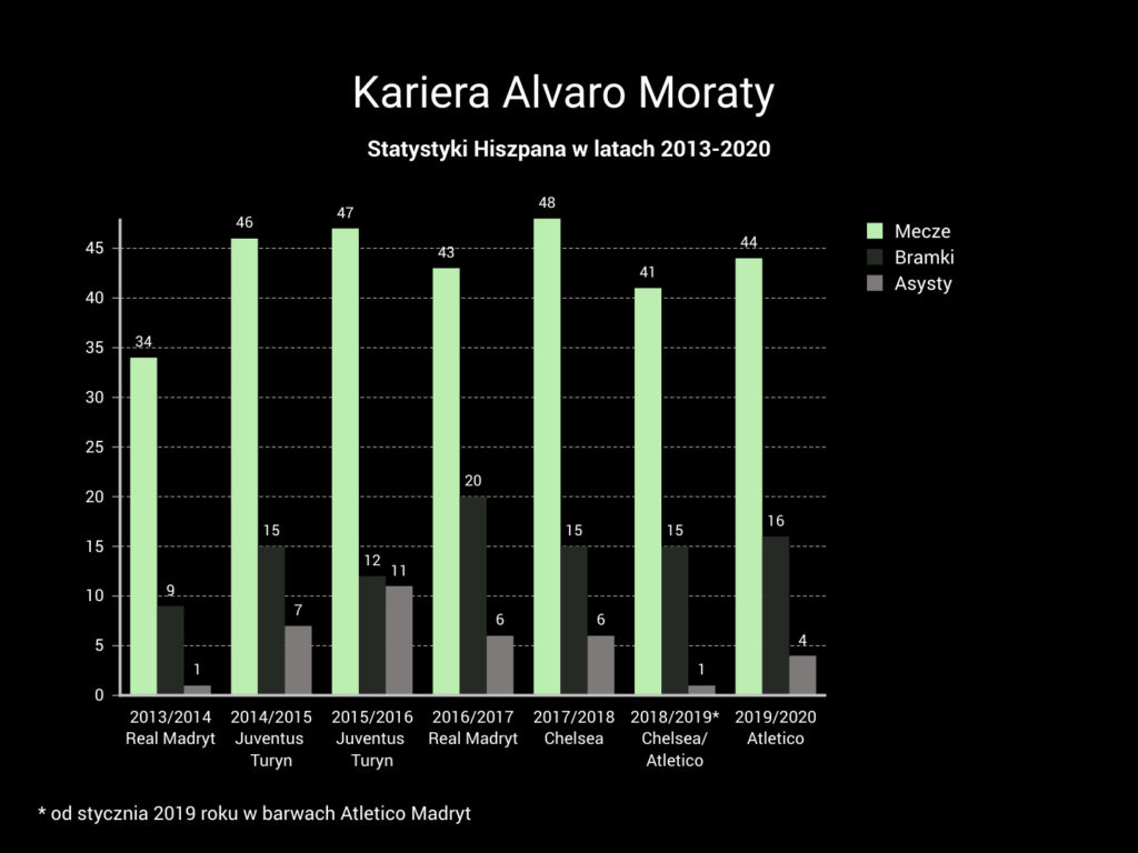 Po Juventusie i Chelsea, czyli kluby prowadzone wówczas przez Włochów, nastał czas gry w siermiężnym Atletico. To wszystko miało wtedy sens, bo patrząc na charakterystykę zawodnika, ten idealnie miał wpasowywać się w grę drużyny broniącej się, grającej z kontrataku i stawiającej na stałe fragmenty gry. Rzeczywistość pokazała co innego, lecz jak to w przypadku Moraty bywa, znowu znalazł się ktoś ślepej wiary.