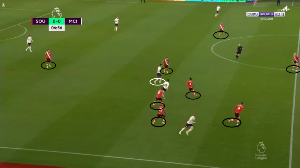 Jeżeli negatywnie trzeba odbierać poczynania ofensywne graczy Manchesteru City w ofensywie w trakcie sobotniego spotkania, to to samo trzeba stwierdzić w kontekście Southampton. Gospodarze mieli ogromny problem z kreowaniem sobie sytuacji podbramkowych. Kolejny raz w tym momencie przydatna będzie statystyka „oczekiwanych goli”. Statystycy wyliczyli ją i w kontekście gospodarzy, w tym spotkaniu, wyniosła zaledwie 0.59. Dla porównania średni wynik w tym sezonie drużyny Ralpha Hasenhüttla to 1.10.