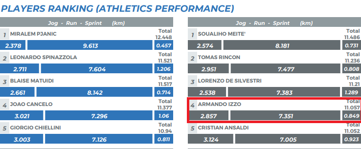 Obecnie Armando jest w najlepszej formie, dlatego warto zwrócić uwagę na kilka aspektów. Podczas ostatniego ligowego spotkania z Juventusem Izzo zajął czwarte miejsce w Torino pod względem przebytej odległości.