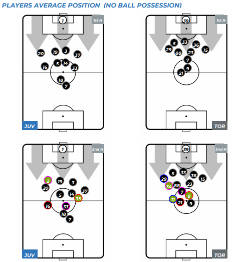 Juventus przystąpił do rywalizacji, mając zagwarantowane mistrzostwo Włoch, ale wiadomo, rywalizacja derbowa rządzi się swoimi prawami. Dlatego oba zespoły nie zamierzały odpuszczać sobie nawzajem. „Stara Dama” w ofensywie zdeklasowała całą ligę, dlatego Torino (gdy nie było w posiadaniu piłki) ustawiało się głębiej w obronie niż piłkarze „Juve”. Dużą rolę w tym odgrywał Armando Izzo (na mapie z numerem 5).