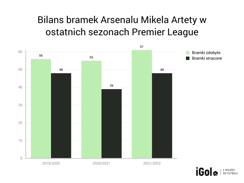 Sezon 2020/2021 był najlepszy pod względem defensywy, z kolei w sezonie 2021/2022 drużyna zdobyła najwięcej bramek za kadencji Artety. Kilka lat pracy nad rozwojem obu formacji, ofensywnej i defensywnej, może przynieść skutki w aktualnych rozgrywkach. W ośmiu spotkaniach Arsenal 20-krotnie trafiał do bramki przeciwnika, ustępując miejsca City pod tym względem. Przy tym stracił tylko osiem goli, jeden więcej niż prowadzący w tej klasyfikacji Everton. Zaczął grać pewniej w ofensywie, często przytłaczając rywala narzuconym tempem.