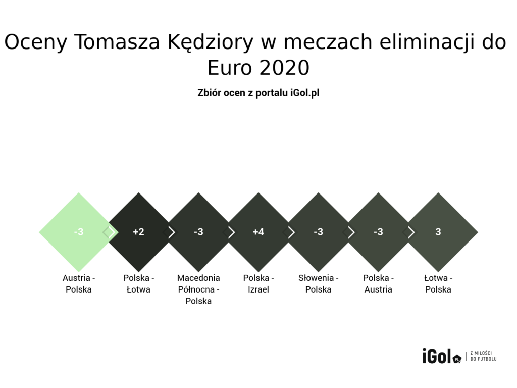 Zaczął już grać pod koniec pierwszej edycji Ligi Narodów, ale bardziej skupimy się eliminacjach do Euro 2020. Zaczęło się od meczu z Austrią, który nie poszedł najlepiej piłkarzowi Dynamo Kijów. Miał sporo problemów w defensywie, w której Austriacy mogli kreować swoje akcje. W ofensywie było ciut lepiej i dzięki jego strzałowi Krzysztof Piątek mógł zdobyć jedynego gola z tego spotkania. Z meczu na mecz Kędziora wyglądał już lepiej. Przede wszystkim grał pewniej w obronie, na której często rywale musieli się z nim ścierać fizycznie. Można nawet powiedzieć, że ci mający obawy o naszą prawą stronę, kiedy Bereszyński znajdował się po lewej, mogli być spokojniejsi. Dodatkowym plusem dla niego może być jeszcze to, że Polska straciła gole tylko w jednym spotkaniu w ciągu całych eliminacjach.