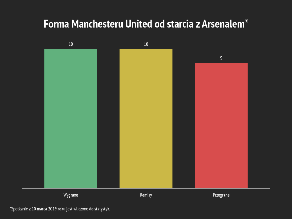 Gorsza forma dopadła Manchester United jeszcze w marcu ubiegłego roku. Po przegranej z Arsenalem 0:2 „Czerwone Diabły” zaczęły grać bez pomysłu, często tracąc punkty z niżej notowanymi rywalami. Ta sytuacja nie uległa zmianie do dziś, więc starcie z „Kanonierami” stanowi punkt odniesienia do początku problemów Norwega. Od wspomnianego starcia na Emirates, biorąc pod uwagę wyłącznie rozgrywki Premier League, podopieczni 46-latka zdobyli 40 punktów na 87 możliwych.