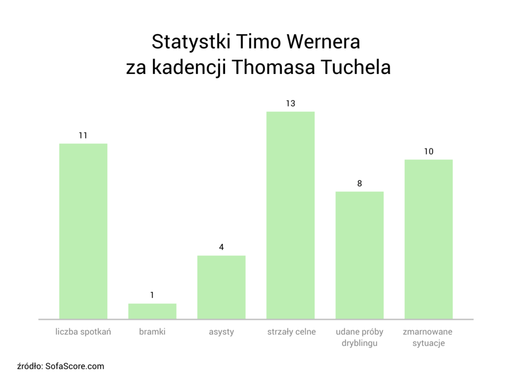 Jednak w środowym starciu przeciwko Atletico każdy z nich zaprezentował się z pozytywnej strony. Timo Werner zaliczył asystę przy golu Hakima Ziyecha, przy czym był bardzo aktywny podczas meczu. Gra byłego zawodnika RB Lipsk naprawdę mogła się podobać, ponieważ kreował on zespołowi sporo dobrych okazji. Nie sposób natomiast nie wspomnieć, że taki napastnik jak Werner powinien mieć na swoim koncie więcej trafień, a za kadencji Tuchela zainkasował na razie tylko jedną bramkę…