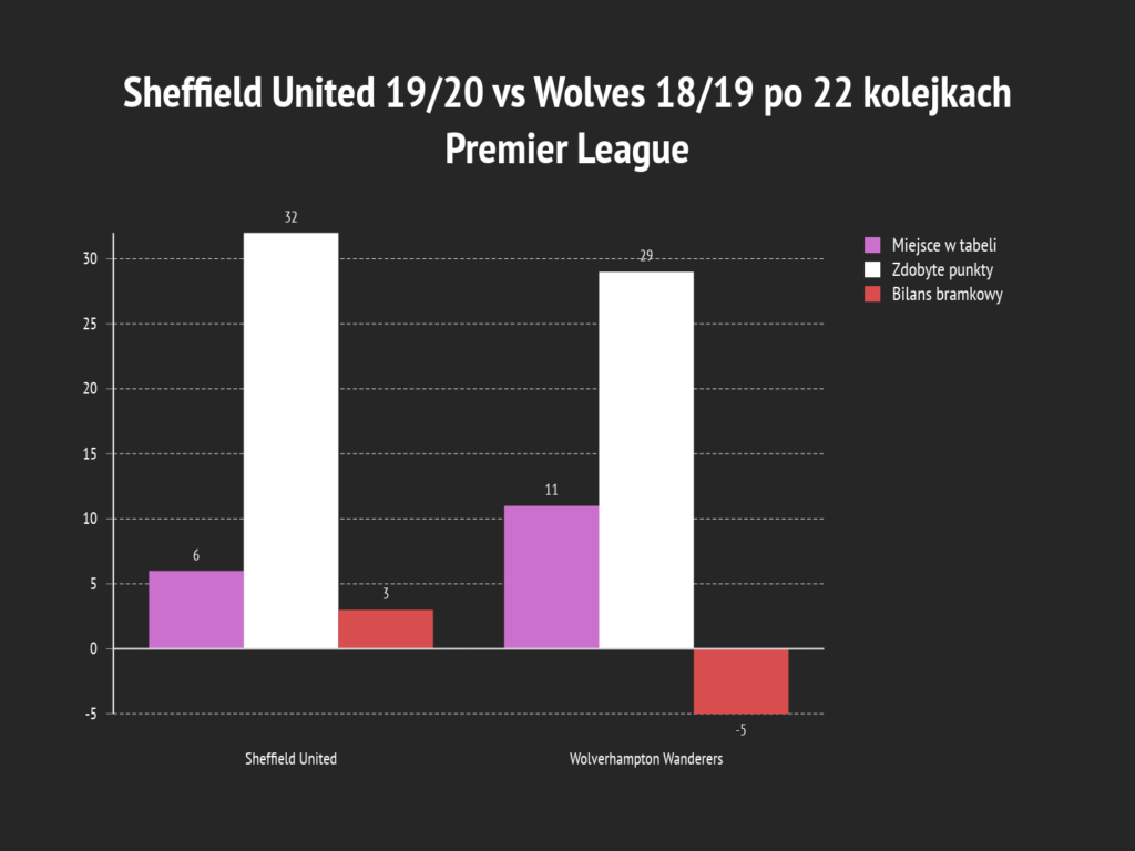 Sheffield z kolei może mieć aspiracje, by powtórzyć wyczyn, tym razem chlubny, innego beniaminka z kampanii 2018/2019. Wolverhampton w zeszłym sezonie zakwalifikowało się do gry w europejskich pucharach. „Wilki” wówczas, podobnie jak teraz Sheffield, były beniaminkiem angielskiej ekstraklasy, a mimo to ta sztuka im się udała. „The Blades” nadal stoją przed wielką szansą na powtórzenie tego sukcesu. Podobnie jak w przypadku Aston Villi klub z Bramall Lane spisuje się na tym samym etapie rozgrywek lepiej od zespołu, do którego go porównuję.