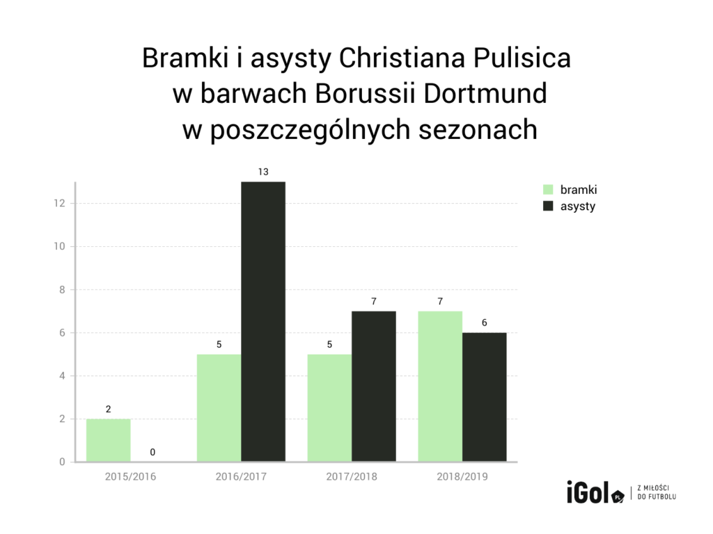 Jak wszyscy dobrze wiedzą, oczekiwania wobec nastolatków po kilku dobrych występach w seniorskiej piłce są coraz większe z meczu na mecz. Nie inaczej było u Pulisica, jednak sam piłkarz zawieszał sobie tę poprzeczkę coraz wyżej. Rok później zanotował pięć bramek i 13 asyst, mając tylko 18 wiosen. Bardzo szybko więc zaczął stanowić o sile ofensywy zespołu z Dortmundu. Przykuł tym samym uwagę największych europejskich potęg.