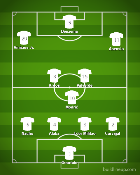 No właśnie, kłopoty mięśniowe… Carlo Ancelotti kiedy tylko może, desygnuje na murawę tę samą jedenastkę. Właściwie jedyna rotacja, jaką można u niego zauważyć, to ta na pozycji prawoskrzydłowego. Tam o miejsce w składzie rywalizują Rodrygo i Marco Asensio. Zawodników na innych pozycjach można śmiało wytypować już przed meczem.