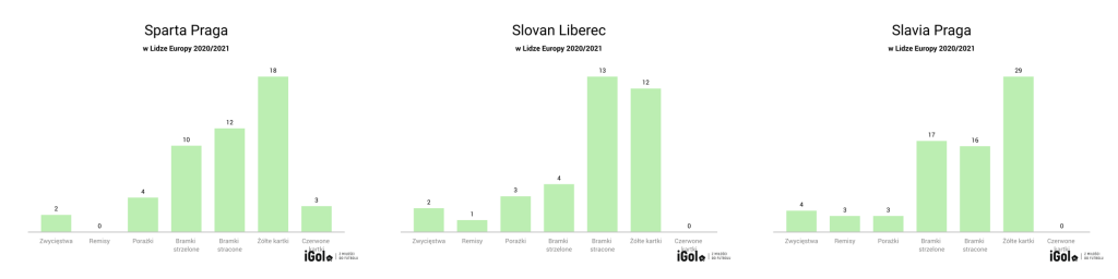 Teraz czas na odrobinę statystyk. Czechy w ubiegłorocznej edycji Ligi Europy reprezentowały trzy drużyny: Slovan Liberec, Sparta Praga oraz Slavia Praga. To najwięcej drużyn ze wszystkich państw ex aequo z Anglią, Belgią, Włochami i Hiszpanią, również po trzy zespoły. Natomiast dwie drużyny pożegnały się z piłkarską Europą na poziomie eliminacji: Viktoria Pilzno i FK Jablonec. Najszybszą bramkę strzelił w 14. minucie Ondrej Lingr (Slavia Praga) w meczu z Niceą, a najwcześniej czeskie zespoły straciły bramkę w 7. minucie w meczu (Crvena Zvezda – Slovan Liberec). Czas na podsumowanie gry poszczególnych klubów: