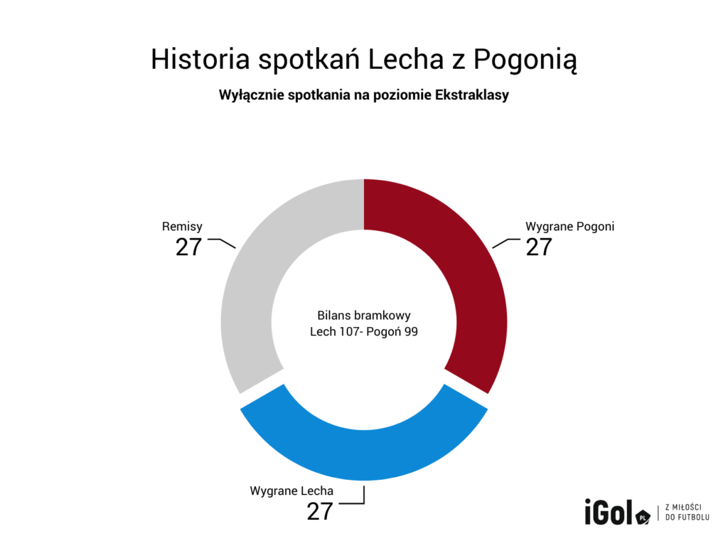Tak jak wspomnieliśmy na początku, nadchodzący pojedynek obu ekip jest czymś więcej niż tylko starciem dwóch ekstraklasowych drużyn. Ze względu na położenie geograficzne Pogoni, najbliższy wyjazd większej liczby kibiców był właśnie do stolicy Wielkopolski. Dlatego rywalizacja z Lechem od lat jest jednym z takich meczów, które sympatycy obu klubów zakreślają w kalendarzach. Od nudnych 0:0, po jednostronne widowiska, aż po te najbardziej szalone takie jak choćby w 1995 roku, gdzie Pogoń przegrywała już 2:0, aby w ostatnich pięciu minutach zdobyć trzy gole i wygrać mecz. Ale jak przebiegała rywalizacja obu klubów w ekstraklasie patrząc całościowo?