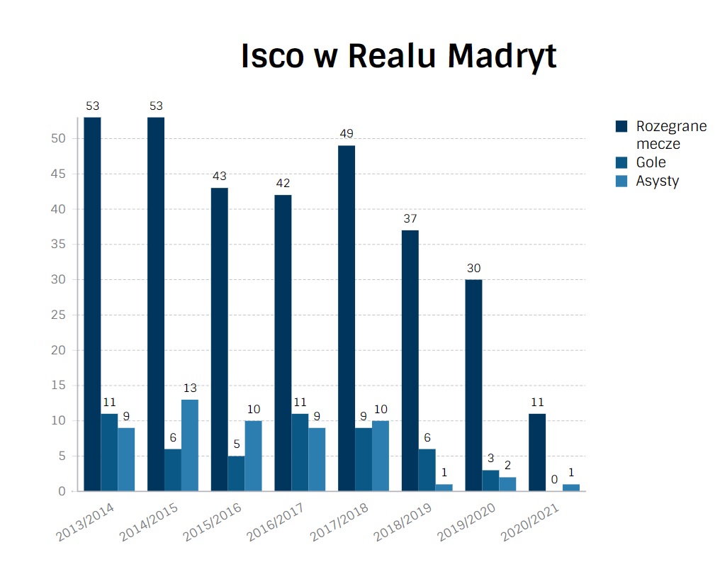 W tym czasie „Królewskich” prowadziło pięciu szkoleniowców. Od każdego Isco dostawał szansę, lecz nie potrafił jej wykorzystać. W jego grze pojawiały się jedynie przebłyski geniuszu. Brak stabilizacji formy na wysokim poziomie sprawił, że stał się on etatowym rezerwowym. Jeżeli już Isco grał od pierwszej minuty, to z powodu absencji któregoś z kluczowych graczy w ofensywie Realu Madryt. Szansą na odmianę losu może być przeprowadzka do Sevilli. Drużyna z Estadio Ramon Sanchez Pizjuan z otwartymi ramionami przywitałaby 28-latka w swoich szeregach.