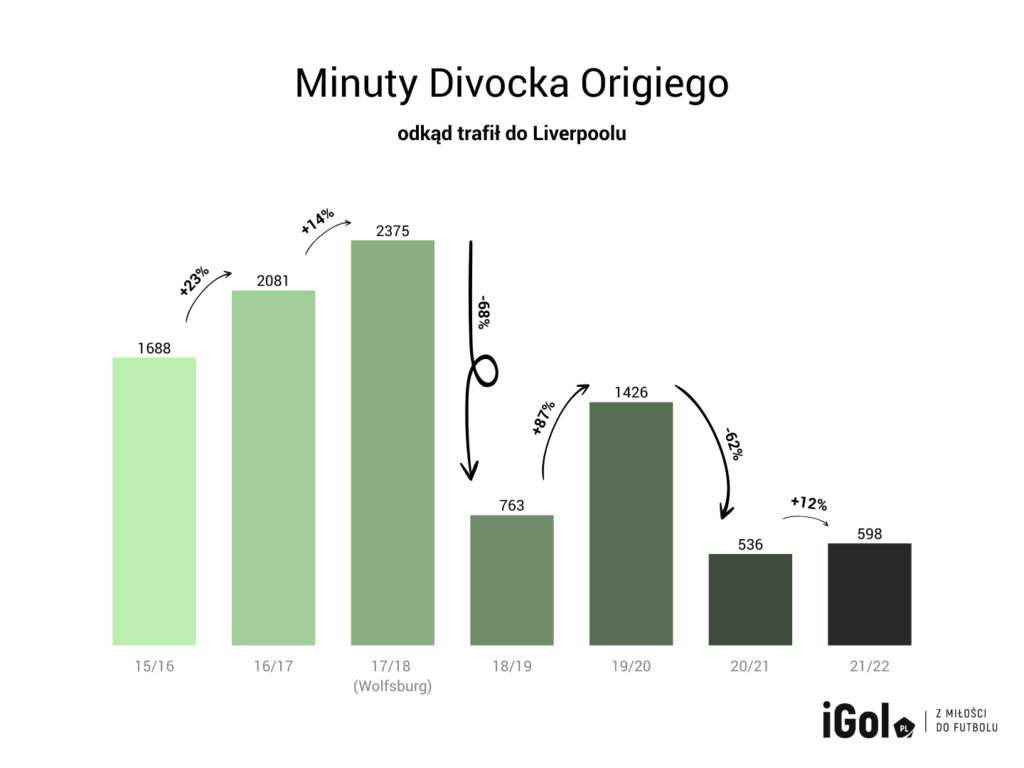 Olbrzymim problemem Divocka Origiego była jego forma, która z jakąkolwiek stabilizacją miała niewiele wspólnego. Oczywiście dobre spotkania mu się zdarzały. Naprawdę był to piłkarz, który momentami potrafił podnosić poziom Liverpoolu. Niestety tylko momentami. W dłuższej perspektywie wnosił bardzo mało jakości, czego bolesnym potwierdzeniem było kompletnie nieudane wypożyczenie do Wolfsburga. W Niemczech odbił się od ściany. Pewnie gdyby nie to, że jego konkurenci z Liverpoolu w większości również nie spełnili oczekiwań, Belga już dawno nie byłoby w klubie.