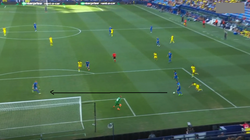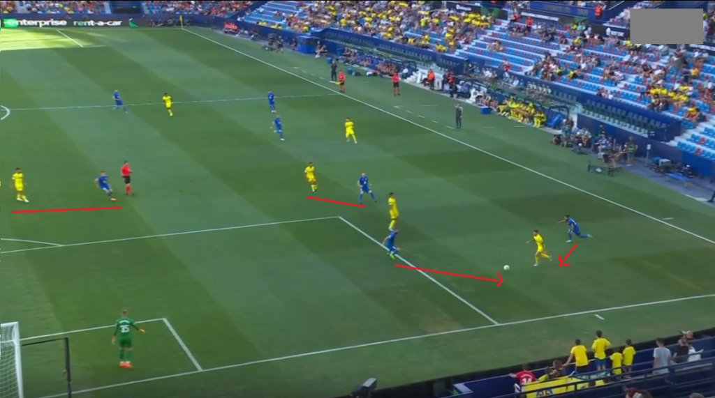 Natomiast kiedy drużynie Villarrealu udało się wyjść z ewentualnego pressingu Lecha i złapać ustawienie, przechodzili oni wtedy na system 3-4-3. Lewy obrońca Johan Mojica przenosił się wyżej na lewe wahadło. Prawy defensor de la Fuente schodził do pozostałych dwóch stoperów, a Manu Trigueros przechodził do ataku.