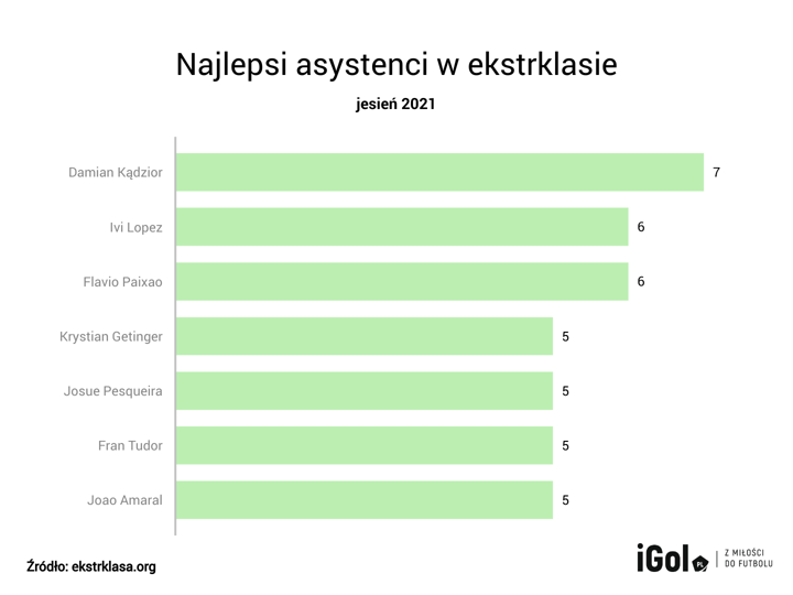 Najwięcej asyst zanotował piłkarz Piasta Gliwice Damian Kądzior.