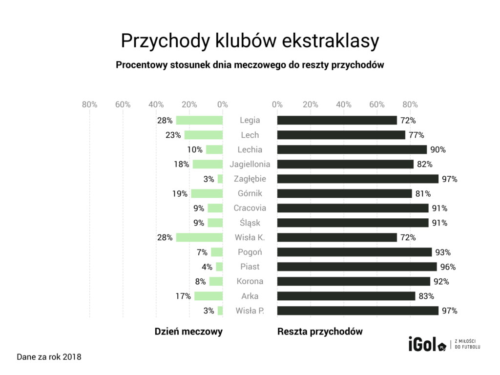 W przypadku rozgrywania meczów piłkarskich bez udziału kibiców część klubów nie odczułaby większych strat. Dla Wisły Płock czy Zagłębia Lubin to tylko niecałe 3% przychodów. Ale sytuacja już inaczej wygląda w przypadku Legii, Wisły Kraków czy Lecha, gdzie ta kwota może stanowić nawet 1/4 dochodów. Część rzeczy mogą pokryć pieniądze z tytułu praw telewizyjnych, ale gra bez fanów odbije się na finansach polskich ekip oraz na piłkarzach. W ich przypadku gra przy pustych trybunach wiąże się z brakiem dodatkowego wsparcia lub presji. Z pustymi krzesełkami nie ma takiej samej atmosfery i w zasadzie żaden gracz nie chciałby spędzić wielu kolejek bez kibiców. Ale na ten moment nie mamy nawet tego. Wszystko stanęło.