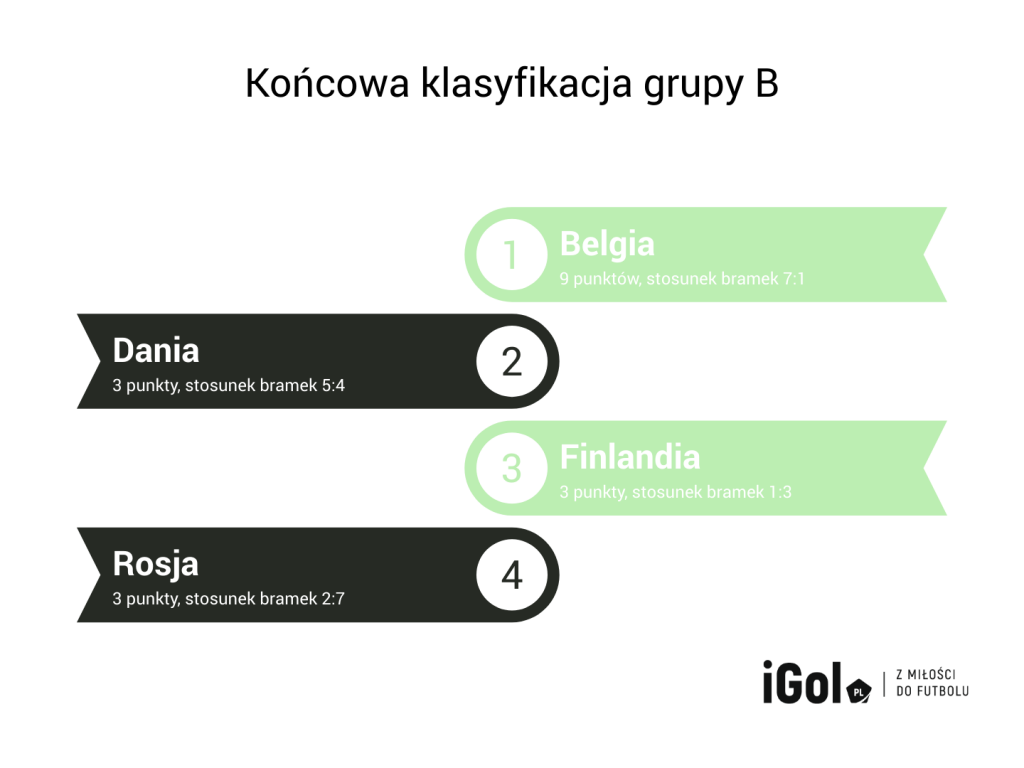 Tak samo było w przypadku Belgów. „Czerwone Diabły” zaczęły strzelać bramki Finom dopiero w drugiej połowie, lecz identycznie jak Holendrzy mogą pochwalić się trzema zwycięstwami na tegorocznych mistrzostwach Europy. To oznaczało więc, że wczorajsi rywale reprezentacji Roberto Martineza – „Puchacze” – zajęli trzecie miejsce i muszą liczyć na korzystne rezultaty w innych meczach, aby awansować.