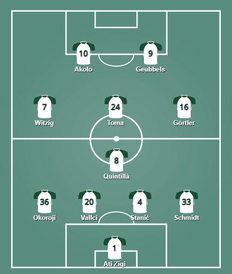 Natomiast jedną z rzeczy zawierających się w żywiole naszego eksperta jest opowiadanie o podstawowym składzie FC St. Gallen. Zatem poprosiliśmy, by przedstawił nam przewidywaną pierwszą jedenastkę na mecz ze Śląskiem Wrocław.
