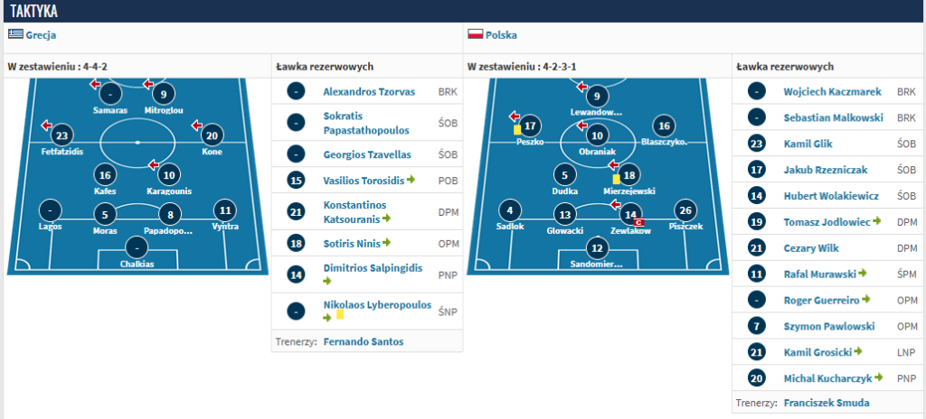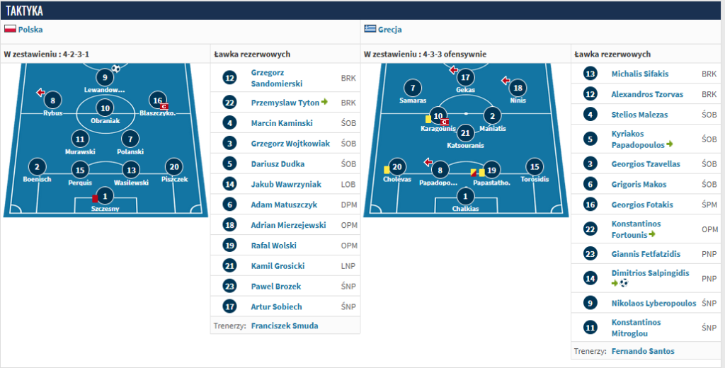 Na boisku działo się niewiele, Robert Lewandowski i Sławomir Peszko zmarnowali sytuacje bramkowe. Sandomierski bronił strzały Mitroglou. Fernando Santos w dziewiątym meczu jako selekcjoner nadal nie zaznał goryczy porażki.