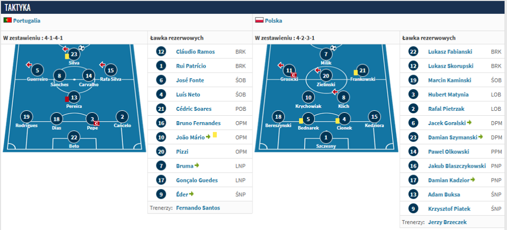 Sam poszkodowany ustawił piłkę na jedenastym metrze i przymierzył obok Beto. Rosyjski arbiter nakazał powtórzenie „jedenastki” z powodu zbyt szybkiego wbiegnięcia Polaków w pole karne. Mimo to Milik wybrał ten sam róg i nie pomylił się, ustalając wynik meczu.