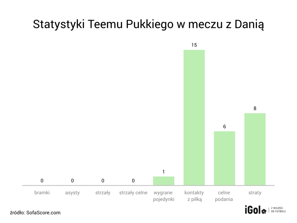 Chodzi oczywiście o Teemu Pukkiego. Snajper zaliczył przeciętne spotkanie. Zszedł z boiska w 76. minucie. Nie do tego przyzwyczaił nas gwiazdor reprezentacji „Puchaczy”. Finlandia w drodze po korzystne rezultaty bez dwóch zdań potrzebuje Pukkiego. Jeżeli zawodnik Norwich City chce pomóc swojej reprezentacji, musi znacznie poprawić swoją grę. Wczoraj wyglądało to po prostu blado.