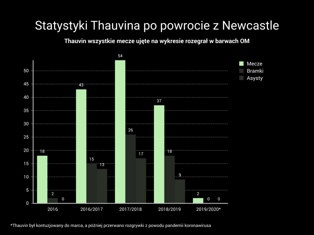 – Podium… to jest już martwe, to koniec. Musimy przestać opowiadać historyjki. Nie mieliśmy dobrego sezonu! A gdybyśmy poszli do Ligi Mistrzów, co byśmy tam pokazali? (…) Szczerze, to zawsze jest to samo. Każdego sezonu zostajemy z niczym, nie wygrywamy meczów, których potrzeba. Dzisiaj nie pozostaje nic innego, jak milczeć i przyjąć do siebie, że jesteśmy zerem – jeszcze nieco ponad rok temu Thauvin tak ostro komentował postawę Olympique Marsylia w lidze. Nic dziwnego. Drużyna prowadzona wówczas przez Rudiego Garcię grała poniżej oczekiwań oraz bez jakiegokolwiek polotu. 18 bramek Thauvina w Ligue 1 uratowało zespół i dało mu 5. miejsce w tabeli. Jednak to było za mało dla wszystkich, a francuskiego zawodnika łączono z coraz większą liczbą klubów.