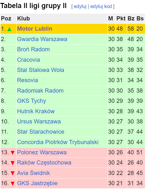 20 września 2022 roku Motor Lublin był na ostatnim miejscu w tabeli 2. ligi