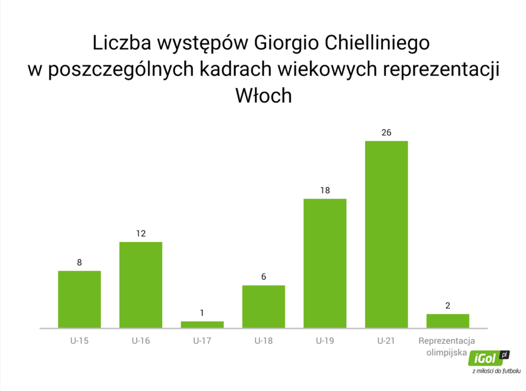 Giorgio Chiellini jest jednym z tych piłkarzy, którzy zagrali w każdej kategorii wiekowej reprezentacji swojego kraju. Jest to osiągnięcie godne podkreślenia, bo obrazuje, jak prawidłowo rozwijał się ten znakomity obrońca.