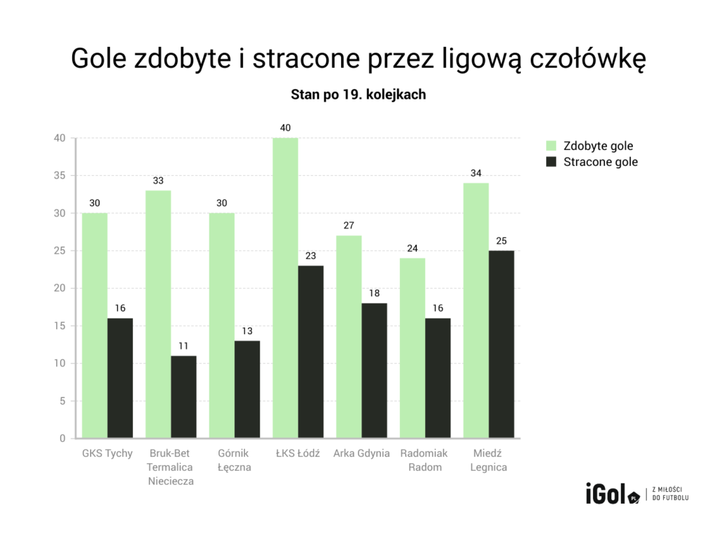 GKS Tychy to nie jest drużyna wyraźnie dominująca w lidze. W trakcie meczów w Fortuna 1. Lidze można zaobserwować błędy popełniane przez tyszan. Wystarczy wspomnieć ostatni weekend i pojedynek z Zagłębiem Sosnowiec. GKS jako pierwszy w tym meczu stracił gola po stracie piłki w środkowej strefie boiska i kontrataku gości. Co ciekawe, to był trzeci mecz w tym sezonie, w którym podopieczni Artura Derbina przegrywali i odwrócili losy wygranej na swoją korzyść. Ale druga lokata Konrada Jałochy w statystykach obronionych strzałów w lidze świadczy o tym, że przeciwnicy potrafią dochodzić do sytuacji strzeleckich. Na korzyść „Trójkolorowych” działa dobra forma graczy ofensywnych.