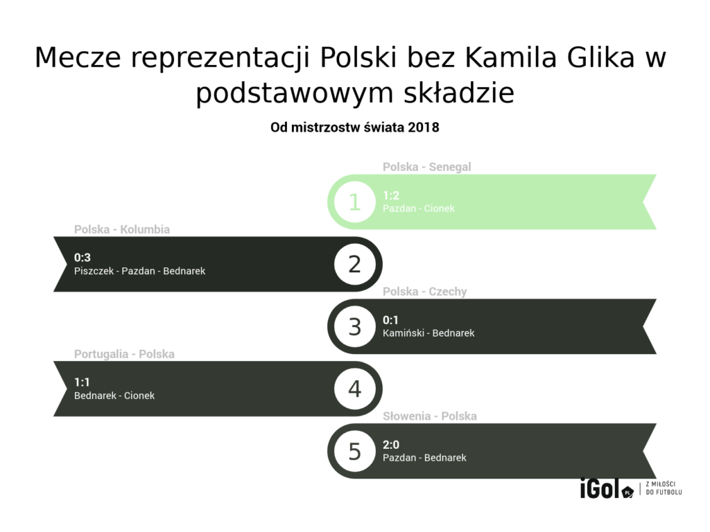Wszystko pięknie, ale nasz blok defensywny ma poważne problemy, kiedy brakuje tej cegły. Wystarczy popatrzeć na mecze, w których nie mógł wystąpić Kamil Glik. W tym przypadku najlepiej wrócić do mundialu w Rosji, gdzie tuż przed turniejem piłkarz Monaco wypadł z powodu kontuzji. Musimy przyznać szczerze, że w momencie ogłoszenia kontuzji 31-latka część redaktorów była przerażona. Niestety te obawy potwierdziły się na turnieju, gdzie nasza obrona wyglądała, delikatnie mówiąc, słabo. Oczywiście nie było tak, że Glik stał się jakimś symbolem zwycięstwa, bo też z nim na boisku przegrywaliśmy. Ale on ma w sobie coś, co daje jego partnerowi więcej spokoju. Dlatego tak świetnie wyglądał przy nim Michał Pazdan, a teraz ma ten „flow” Jan Bednarek.
