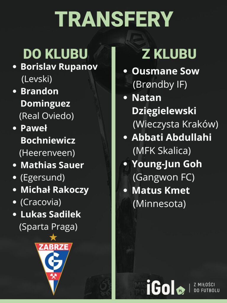W Zabrzu nie zapomniano o bilansie pomiędzy atakiem a obroną. Paweł Bochniewicz wraca na stare śmieci. Wychowanek klubu znów będzie powstrzymywał ataki rywali w naszej lidze po sześcioletniej przygodzie w Heerenveen. Lukáš Sadílek poszerza czeską koalicję na Śląsku i już nie możemy doczekać się obserwacji współpracy pomiędzy 29-latkiem a Patrikiem Hellebrandem. Górnik Zabrze zakontraktował piłkarza z doświadczeniem w europejskich pucharach oraz w reprezentacji Czech. Czy trzykrotny reprezentant kraju powtórzy sukces i sięgnie po tytuł mistrza kraju, jak robił to w stolicy naszego zachodniego sąsiada?