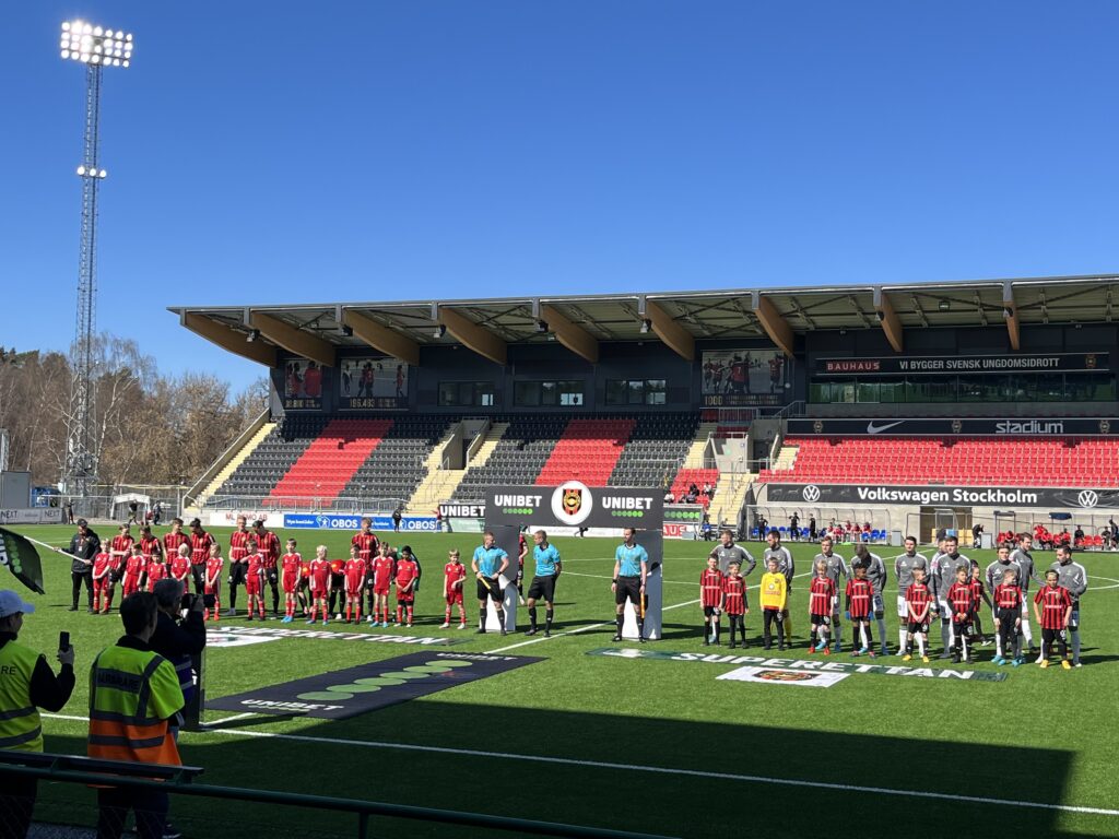 Pomysł na taki a la reportaż wpadł mi do głowy całkowicie przypadkowo. Po kilku perturbacjach udało się przyjechać do Szwecji na święta wielkanocne, a moim celem była podróż do Malmö, gdzie miało miejsce hitowe starcie z AIK. Niestety, ale z powodów finansowych musiałem to odpuścić i poszukać jakiejś alternatywy. Ostatecznie padło na drugoligowe starcie na obrzeżach Sztokholmu pomiędzy IF Brommapojkarna a Skövde AIK. Nie zamierzam nikomu mydlić oczu – początkowo poziom ekscytacji wynosił równe zero. Jednak te nieoczywiste historie zazwyczaj są najciekawsze…