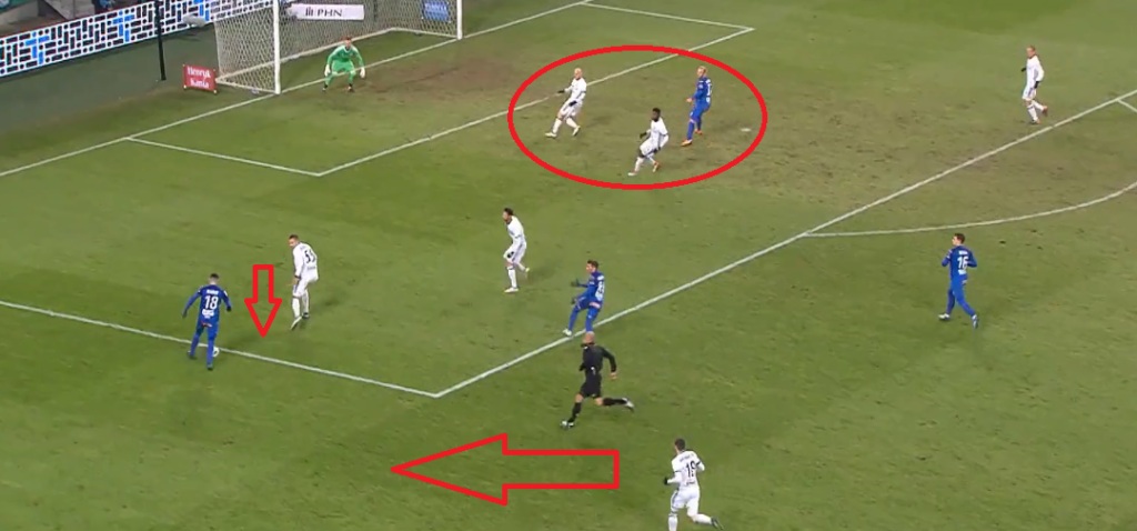 Równie słabo przy bramce Vesovicia zachowali się Janicki i Vujadinović. Żaden z nich nie kontrolował linii spalonego ani wbiegającego na wolne pole pomocnika Legii.