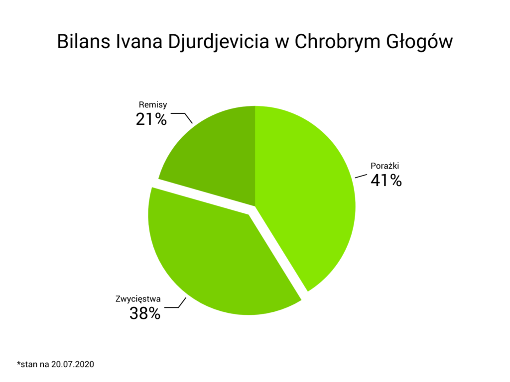 Ivan Djurdjević pojawił się w Głogowie w maju 2019 roku. Był już po nieudanej przygodzie z poznańskim Lechem. Obie strony wiązały spore oczekiwania, jednak ich współpraca trwała dość niespodziewanie krótko. Inaczej sytuacja Djurdjevicia wygląda w Chrobrym. On i jego zawodnicy zdążyli zaliczyć już wzloty i upadki. Na szczęście dla wszystkich klubowi włodarze wytrzymali ciśnienie, gdy drużynie nie szło. Wygląda na to, że to był doskonały ruch. Chrobry zaczął punktować, co przełożyło się na wspaniałą serię czterech spotkań bez porażki. Dzięki temu pojawiły się szanse na to, że głogowski klub na ostatniej prostej będzie w stanie wskoczyć do baraży. Jednak po porażce ze Stalą Mielec wizja baraży oddaliła się od zespołu z Dolnego Śląska.