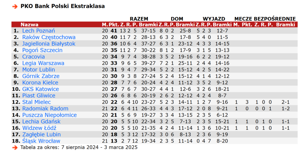 Efekty widać gołym okiem. Odkąd Jacek Zieliński przejął drużynę, Korona naprawdę zaczęła bardzo dobrze punktować. Spójrzcie na tabelę prezentującą punkty zdobyte przez zespoły z PKO BP Ekstraklasy od 7 sierpnia, czyli dnia przejęcia „Scyzoryków” przez Jacka Zielińskiego, aż do dnia po poniedziałkowym spotkaniu z 3 marca. Korona Kielce zdobyła 28 punktów i za ten okres jest dziewiątą drużyną tabeli.