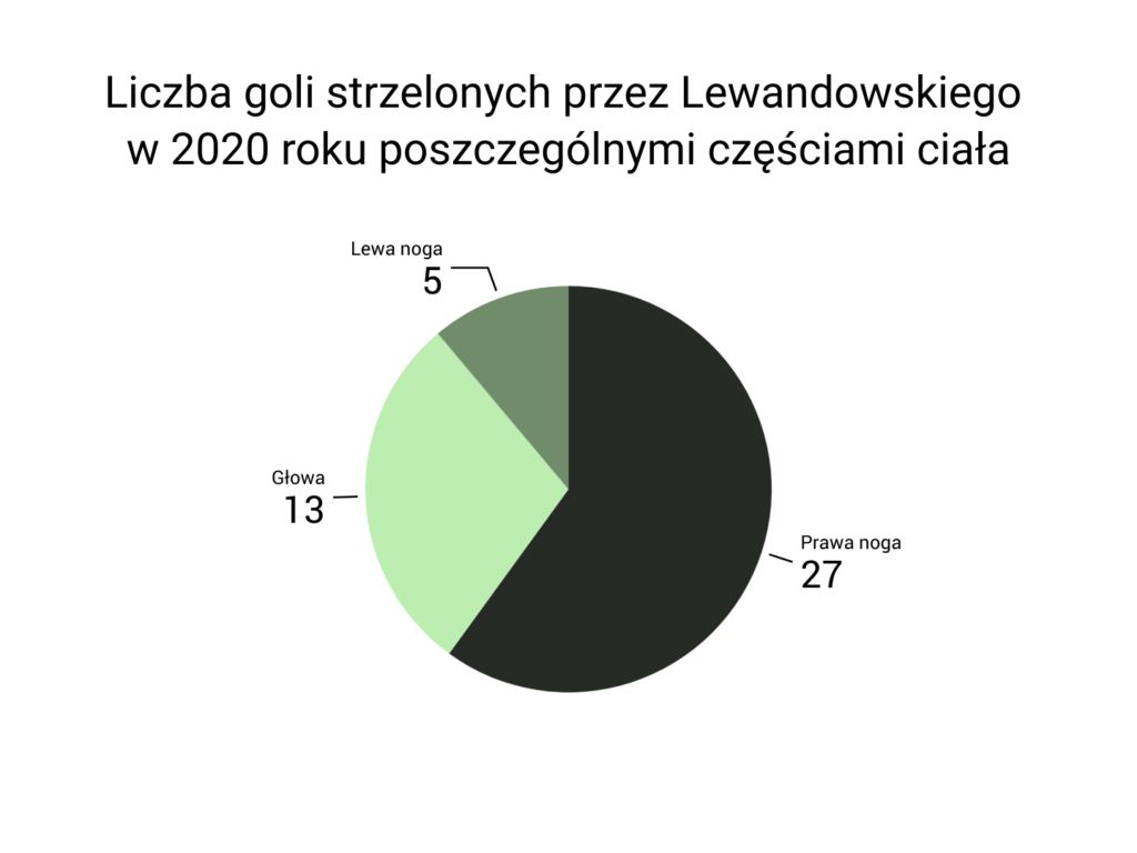 I kolejny rok z rzędu potwierdził, że nie ma granic. I nie ma żadnej bariery wiekowej do rozwijania się. Lewandowski w 2020 roku strzelił 13 goli głową i w tym elemencie gry także stał się absolutną światową czołówką. Skuteczność strzelania prawą nogą ma już w zasadzie opanowaną do perfekcji, trudno wejść na wyższy poziom. Lewą nogą trafiał w tym roku pięciokrotnie, cztery razy mniej niż w roku 2019.