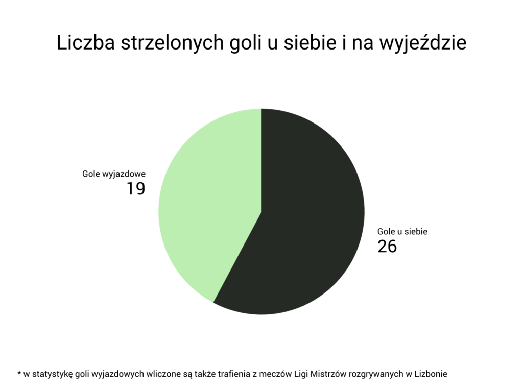 Rzecz o tyle ciekawa względem ostatniego roku, że wówczas Lewandowski więcej goli zgromadził w meczach wyjazdowych. W roku 2020 tendencja jest jasna – w Monachium napastnik Bayernu czuł się najlepiej. A przecież wynik mógł być jeszcze bardziej okazały, gdyby faza pucharowa Ligi Mistrzów od 1/4 finału rozgrywała była w naturalnym formacie, a nie na dwóch stadionach w Lizbonie.