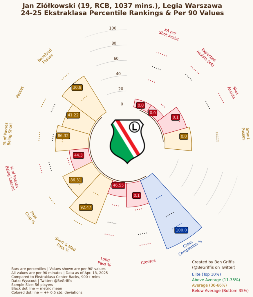 Statystyki sugerują, że choć jeszcze niekompletny, Ziółkowski już dziś znajduje się w ścisłej ligowej czołówce w kluczowych aspektach gry defensywnej. Jeśli zbalansuje agresję, poprawi siłę i podniesie jakość rozegrania, może wejść na najwyższy poziom.
