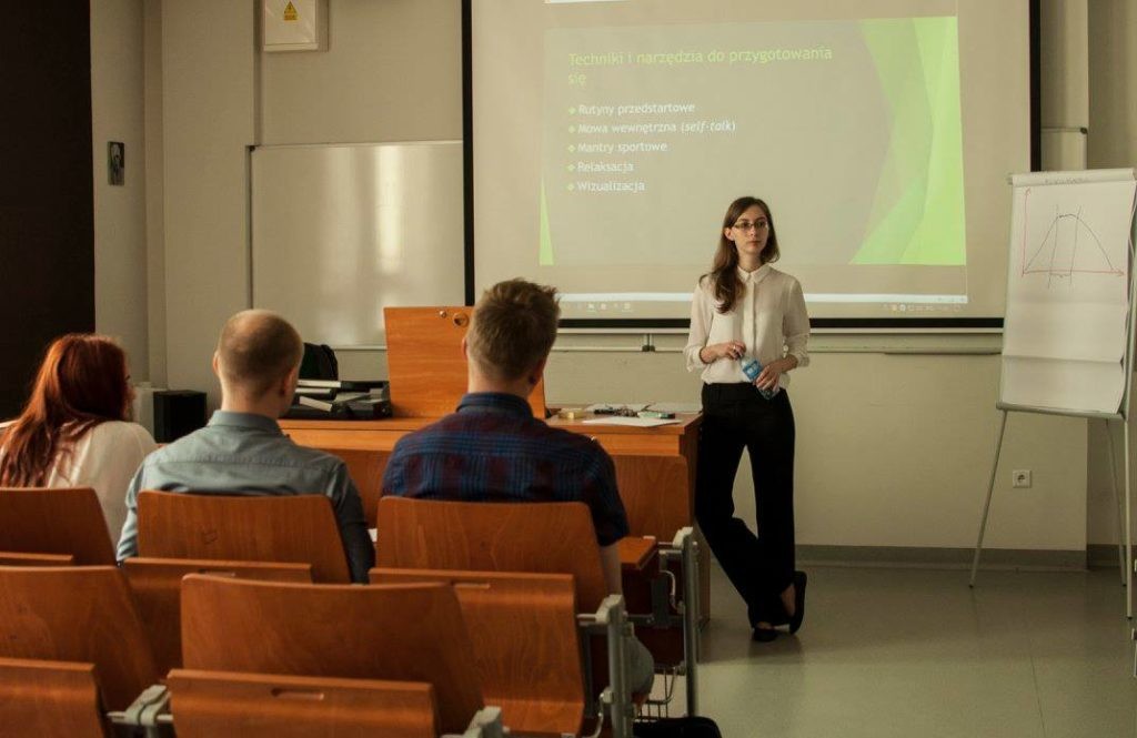 Współpracuję zarówno w trybie grupowym, jak i indywidualnym. Czasem współpracuję z klubem lub szkołą sportową, wtedy najczęściej – zwłaszcza jeśli w grę wchodzą sporty drużynowe, choć nie tylko – prowadzę warsztaty grupowe. Najczęściej dla zawodników, ale czasem też dla trenerów, rodziców czy sędziów. Poza tym pracuję indywidualnie – zarówno w ramach współpracy z klubami, jak i po prostu z osobami, które zgłoszą się do mnie prywatnie i wyrażą chęć współpracy. Prowadzę też zajęcia akademickie dla studentów psychologii.