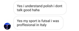 Co prawda mało jest tu piłkarzy, którzy mają szansę na jakąś większą karierę, ale tak naprawdę nie o to w całej tej akcji chodziło. Wciąż warto jednak odnotować, że na porządnym poziomie grali lub grają w Ameryce Południowej Germano i Enzo Kalinski, pewny plac w Serie B ma Vladimir Golemić, a ponoć papiery na niezłe granie mają podobno Filip Marschall lub Kaio. Najbardziej sympatyczne w tym wszystkim jest to, że większość z nich ma jakąś wiedzę o naszym kraju, niektórzy starają się tu przyjeżdżać, a kilku jest w stanie płynnie w naszym języku rozmawiać bądź pisać. Sporo osób ma również ustawioną flagę Polski w opisach swoich profili na Instagramie. Uwagę musiałem jednak tylko zwrócić Davidowi Cupermanowi, któremu polska flaga pomyliła się z tą… Indonezji. Szybko jednak naprawił błąd, kilkukrotnie mnie przepraszając.