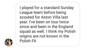 Moim celem nie było bowiem szukanie wzmocnień dla reprezentacji Polski i znalezienie jakichś wielkich piłkarzy. Chodziło o dowiedzenie się czegoś o zawodnikach z najróżniejszych zakątków świata, którzy mogą mieć nasze obywatelstwo. Po wyświetleniu się wyników wyszukiwania w bazie danych gry, zacząłem odzywać się do tych piłkarzy na portalach społecznościowych i wysyłać wiadomości z zapytaniem, czy to prawda, że mają polskie korzenie. Poniżej przybliżę Wam się sylwetki tych zawodników, którzy postanowili mi odpisać i potwierdzić to pochodzenie. Bardzo możliwe, że w momencie publikacji zdążyło mi odpisać kilku kolejnych zawodników, ale uznałem, że i ten tekst i tak już zbyt długo leżał w szufladzie.