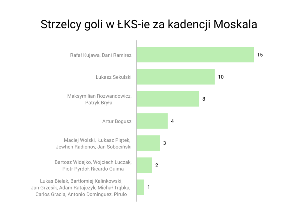Kazimierz Moskal nie tylko zbudował drużynę, ale także wypromował poszczególne jednostki, na czele oczywiście z Danim Ramirezem. Pod jego skrzydłami Hiszpan ze zmęczonego futbolem zawodnika stał się piłkarzem wybitnym na warunki ekstraklasy. Co więcej, razem z Rafałem Kujawą, był też najskuteczniejszym strzelcem ŁKS-u w spotkaniach pod wodzą byłego trenera łódzkiego klubu – obaj trafiali po 15 razy, gdy desygnował ich do gry Moskal.