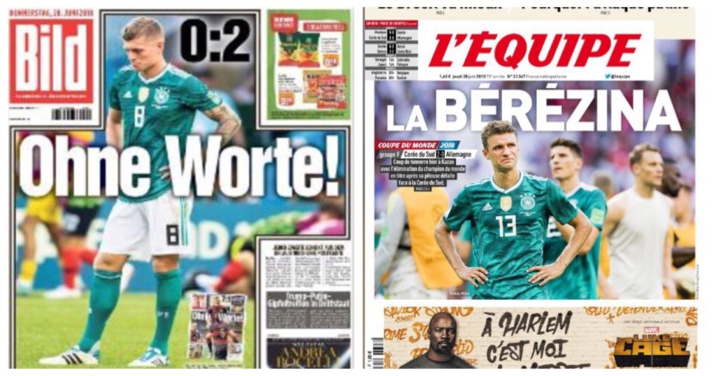 Koniec niemieckiej przygody jest oczywistym tematem numer jeden w ich kraju, ale podobnie dzieje się na całym globie. „Wrak na wszystkich poziomach”, „Kraj w szoku”, „Kaput historico” to tylko niektóre główne nagłówki na pierwszych stronach największych światowych dzienników.