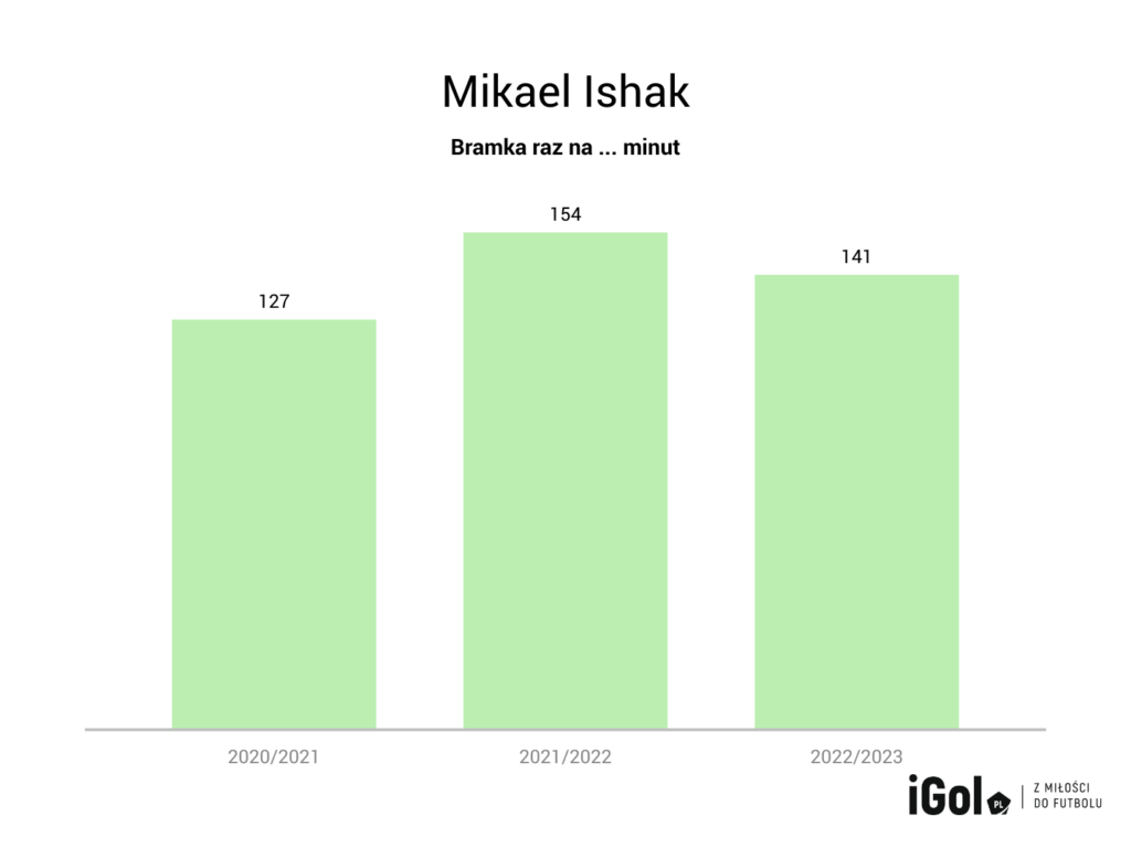 I właśnie to jest coś, czego w tej chwili brakuje Ishakowi, by dorównać Gytkjaerowi. Na koniec sezonu Ishak zapewne zbliży się statystykami do Duńczyka, zresztą kolejna rzecz, która ich łączy – trzeci sezon to najlepszy pod względem goli. Gytkjaer strzelał ich kolejno: 21, 17, 27. W przypadku Ishaka: 20, 18, 14, ale pamiętajmy, że PKO Ekstraklasa nie dobiła jeszcze nawet do połowy sezonu. Z dużą dozą prawdopodobieństwa możemy więc założyć, że Ishak strzeli jeszcze sporo goli w tym sezonie.