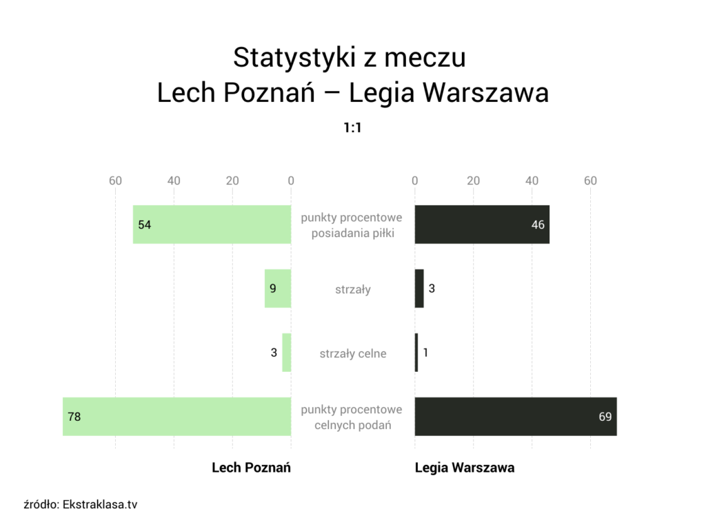 Zaledwie dziesięć minut po objęciu prowadzenia legioniści doprowadzili do wyrównania. Świetne dośrodkowanie Josue wykorzystał Rafael Lopes, dla którego była to czwarta bramka w tym sezonie. W drugiej połowie Lech docisnął gaz, lecz bramki nie padły. Do „Kolejorza” nie uśmiechało się również szczęście. W pierwszej połowie w poprzeczkę z rzutu wolnego uderzył Joao Amaral, natomiast w końcówce spotkania – również ze stałego fragmentu – słupek obił Nika Kvekveskiri.