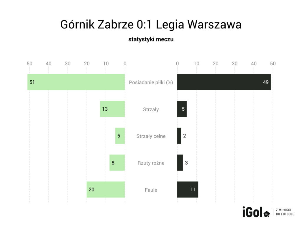 Górnik Zabrze pokazał w tym meczu dwa oblicza. Zaprezentowali się jako drużyna, która potrafi dobrze się bronić i być niewygodnym rywalem, a z drugiej strony jako zespół niebezpieczny również pod kątem atakowania. Poziom, jaki zaprezentowali w tym aspekcie, był niebywały. Legia lubi mieć mecz pod swoją kontrolą, do czego w drugiej połowie już nie była w stanie nawiązać. „Żabole” atakowali, naciskali, strzelali, odbierali wysoko piłkę i byli w ciągłym pressingu. W skrócie – gra mogła się podobać. Dawno nie mieliśmy okazji zobaczyć aż tak pewnie idącego do przodu Górnika.